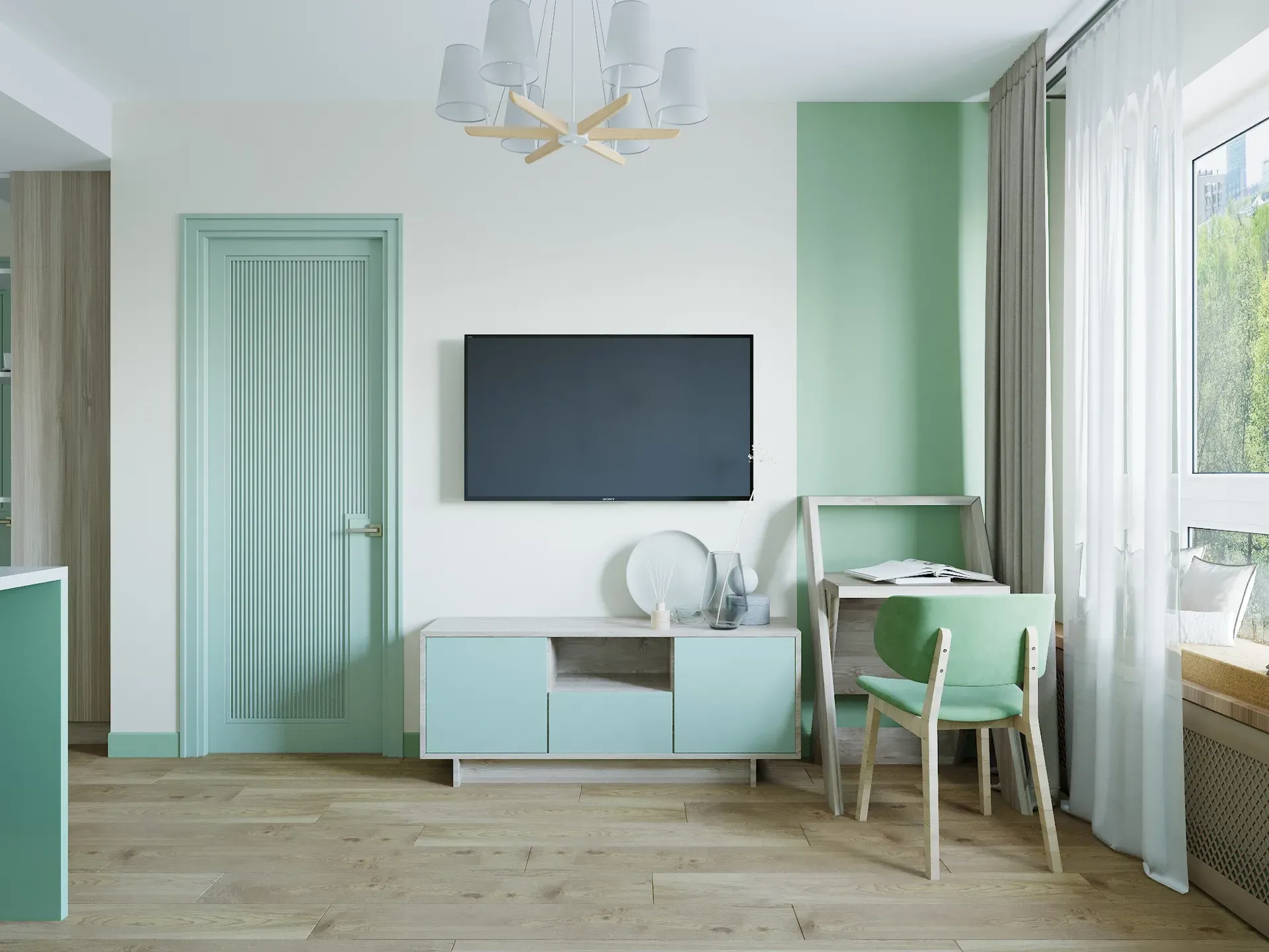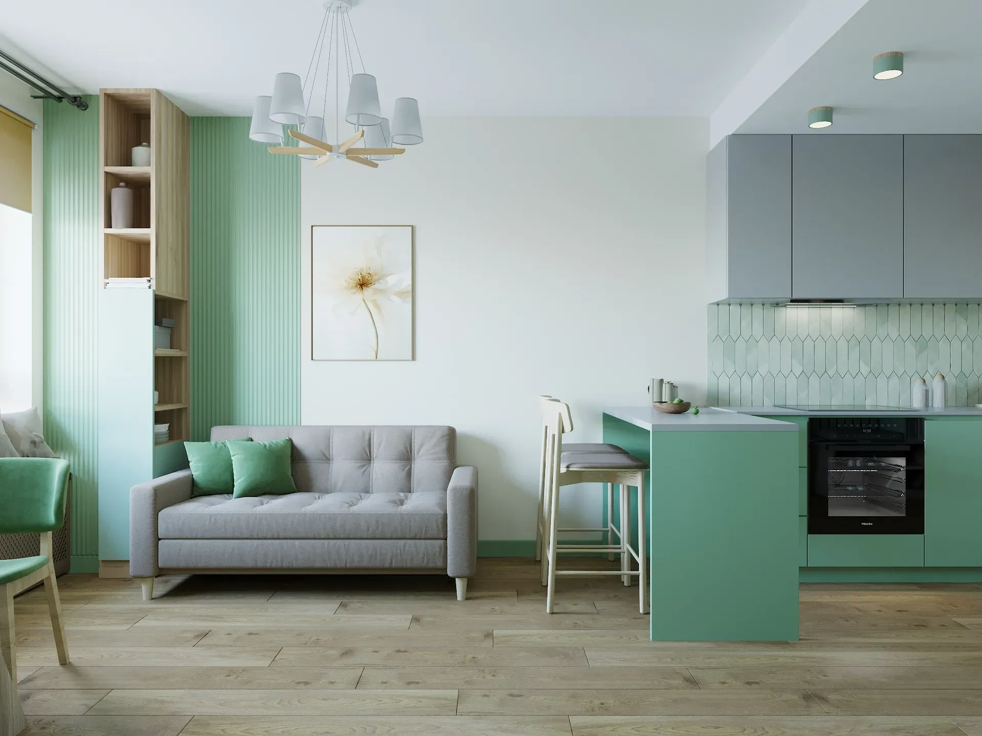 Стилистика проекта — современный минимализм с элементами экостиля. Мы понимали, что интерьер должен быть «фотогеничным» для объявлений и при этом износостойким.