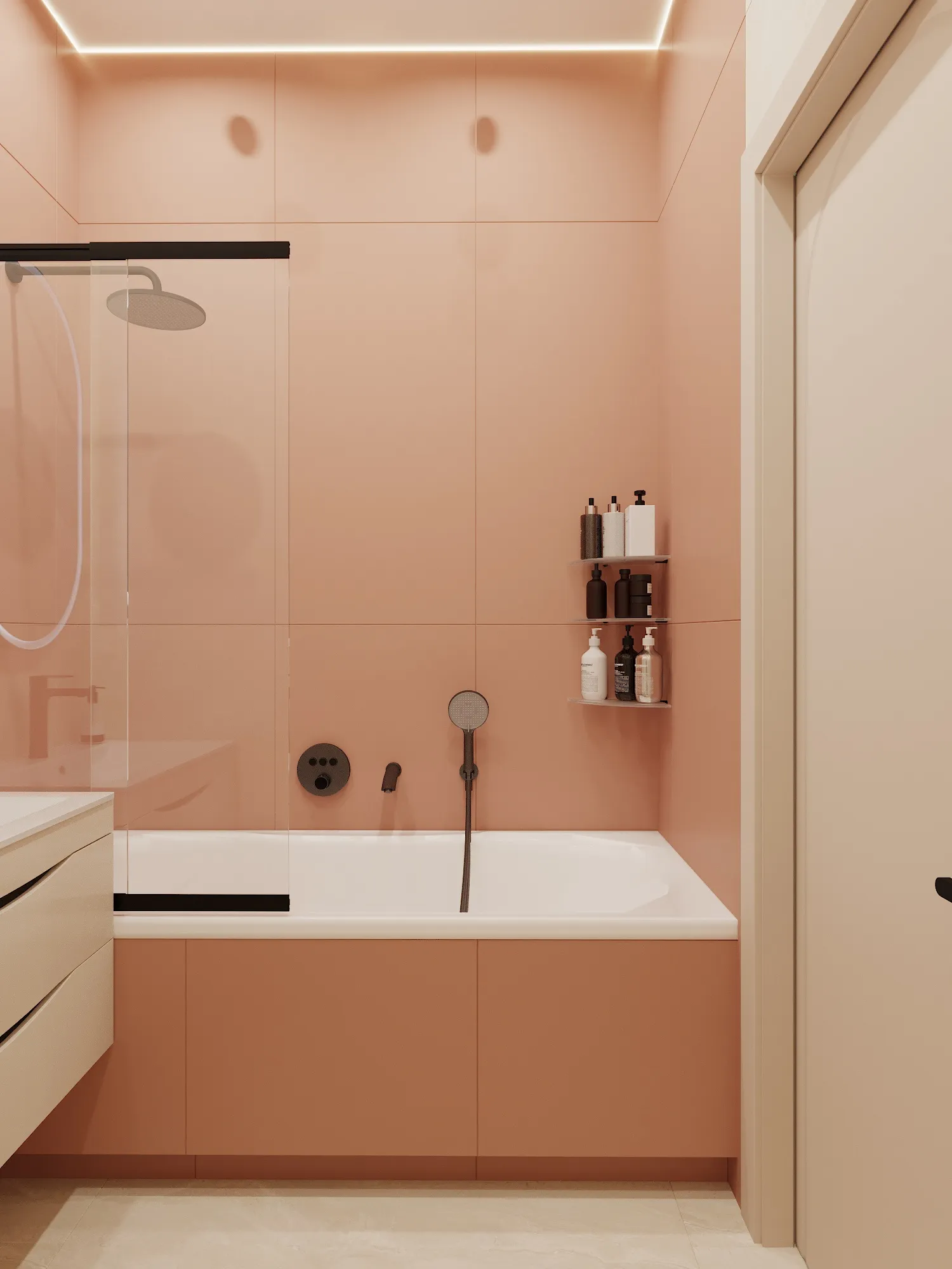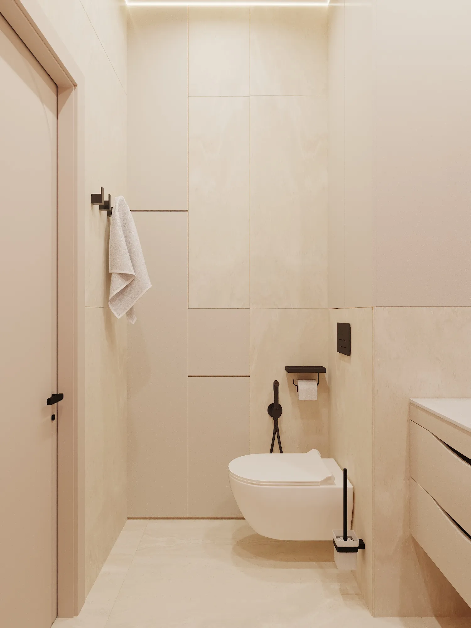 Скрытые двери и плинтуса: Мы старались минимизировать визуальный шум. Двери скрытого монтажа (под покраску) или лаконичные модели в цвет стен не дробят пространство.