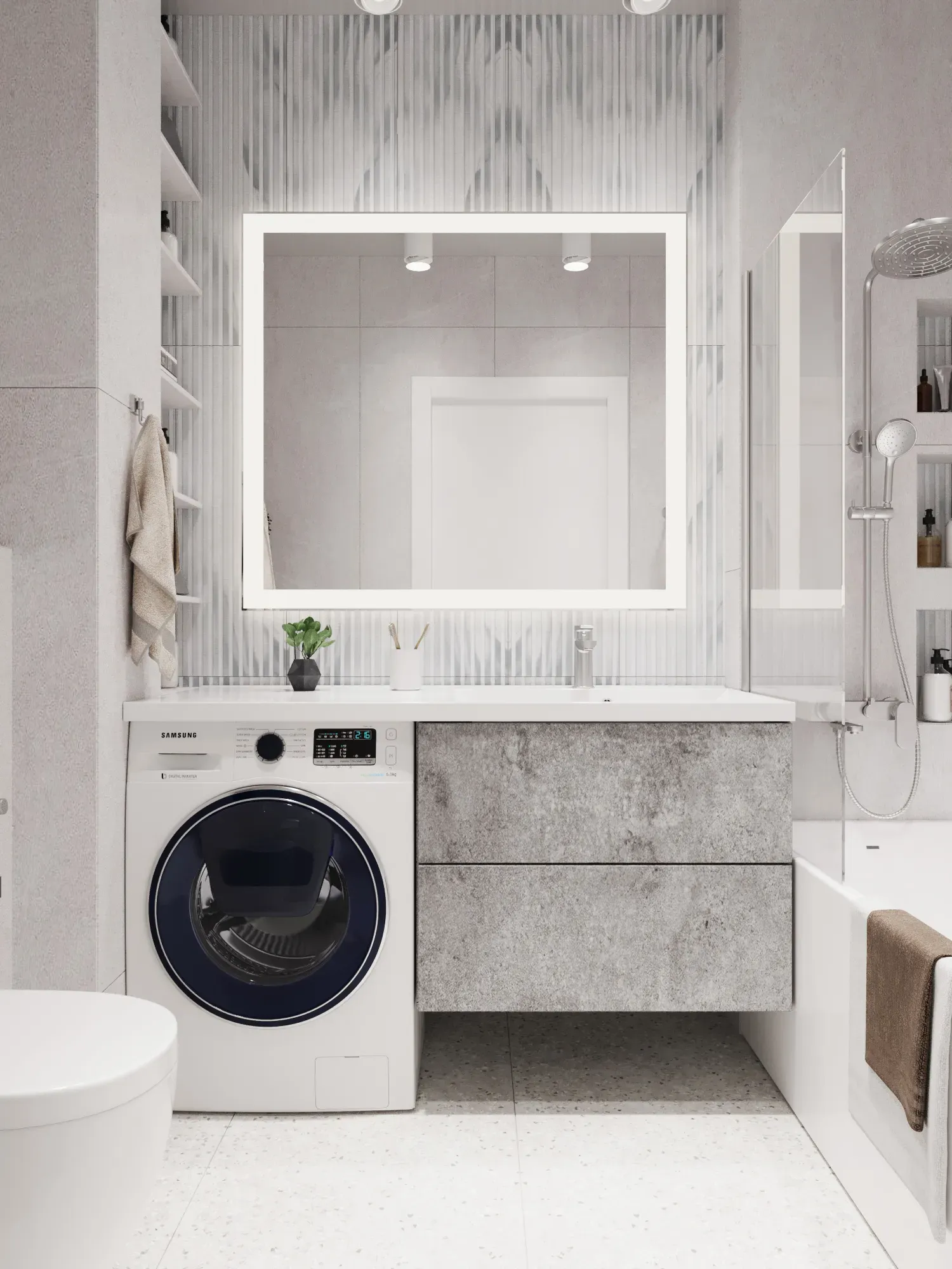 Выбор смесителей — это вопрос надежности. Мы использовали итальянский бренд BelBagno (коллекция NOVA).