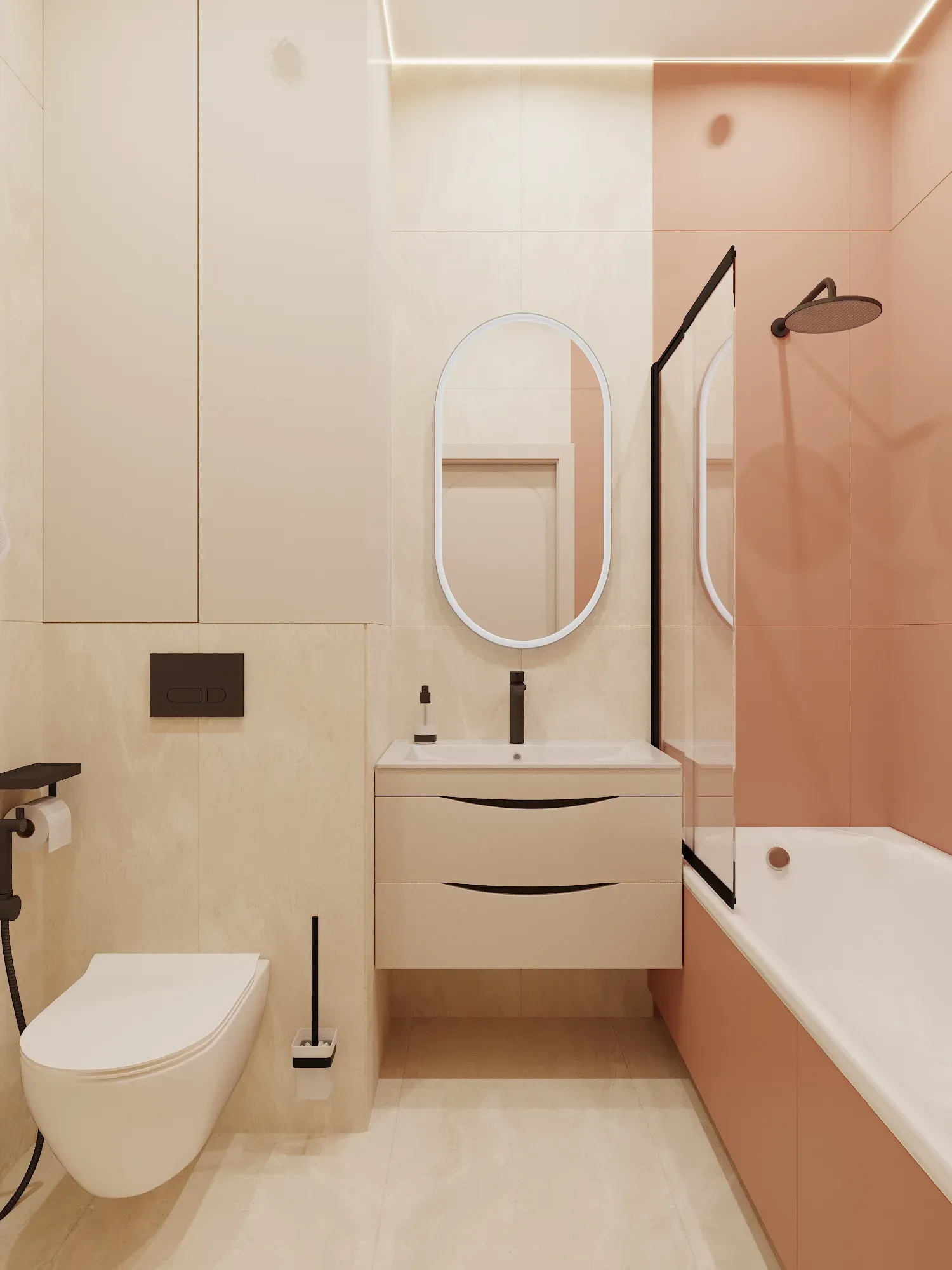 Что касается бюджета, мы ориентировались на сумму около 2 млн рублей. Для реализации такой задачи мы подбирали материалы по принципу «best value for money»: качественная база (сантехника, полы) и разумная экономия на декоре, который можно со временем заменить. Стены подготовлены под обои или покраску, что является практичным решением для семьи с детьми.